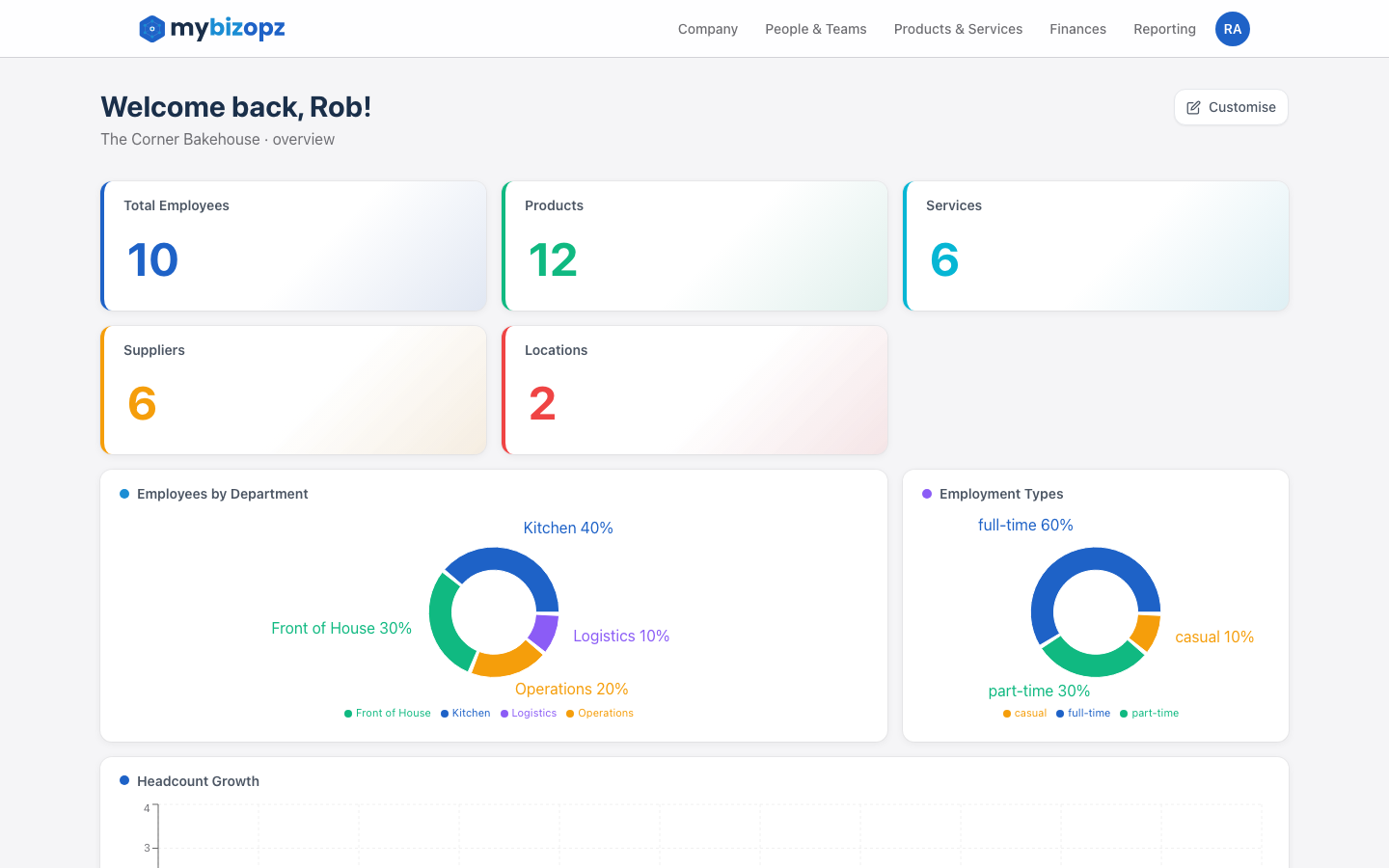 Managing people is one of the hardest parts of running a small business. mybizopz makes it simple — from onboarding through to leave and performance.